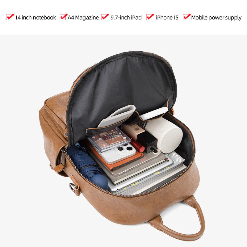 14 Inch Laptop Backpack - Soft PU Leather Travel Bag with Multiple Pockets, Large Capacity Backpack with Top Handle