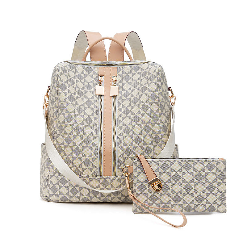 Large Capacity Print Checkerboard Travel Diaper Backpack with Detachable Organizer