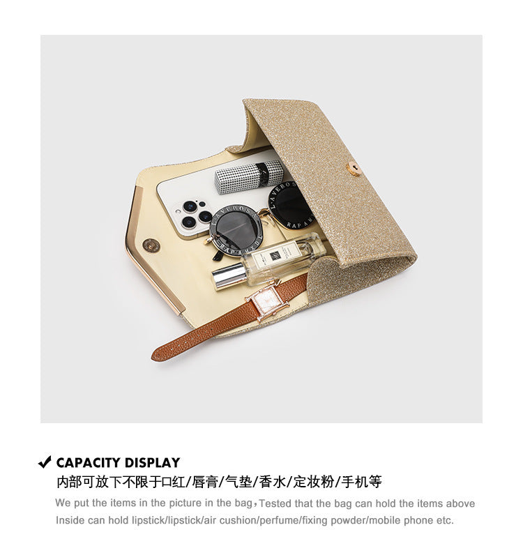 → Holds: Phone + lipstick + cards + keys (fits essentials perfectly)
